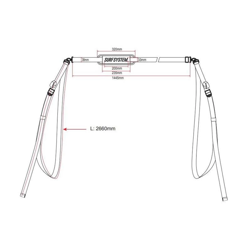 Sangle de transport SurfSystem pour longboard / SUP. Cette attache s’adapte à la planche grâce aux sangles, elle permet de transporter facilement une planche jusqu’au spot sans trop se fatiguer grâce