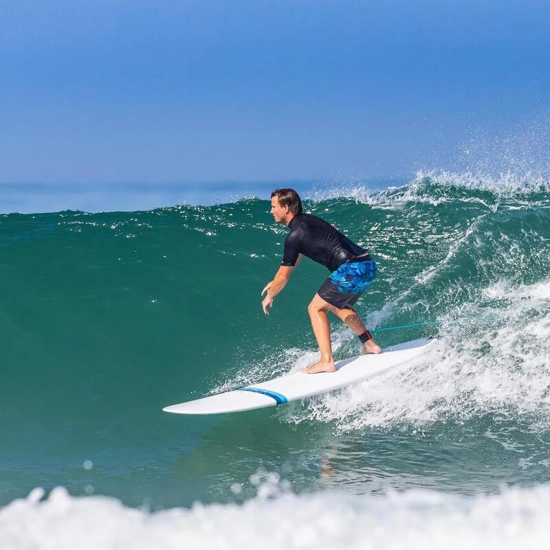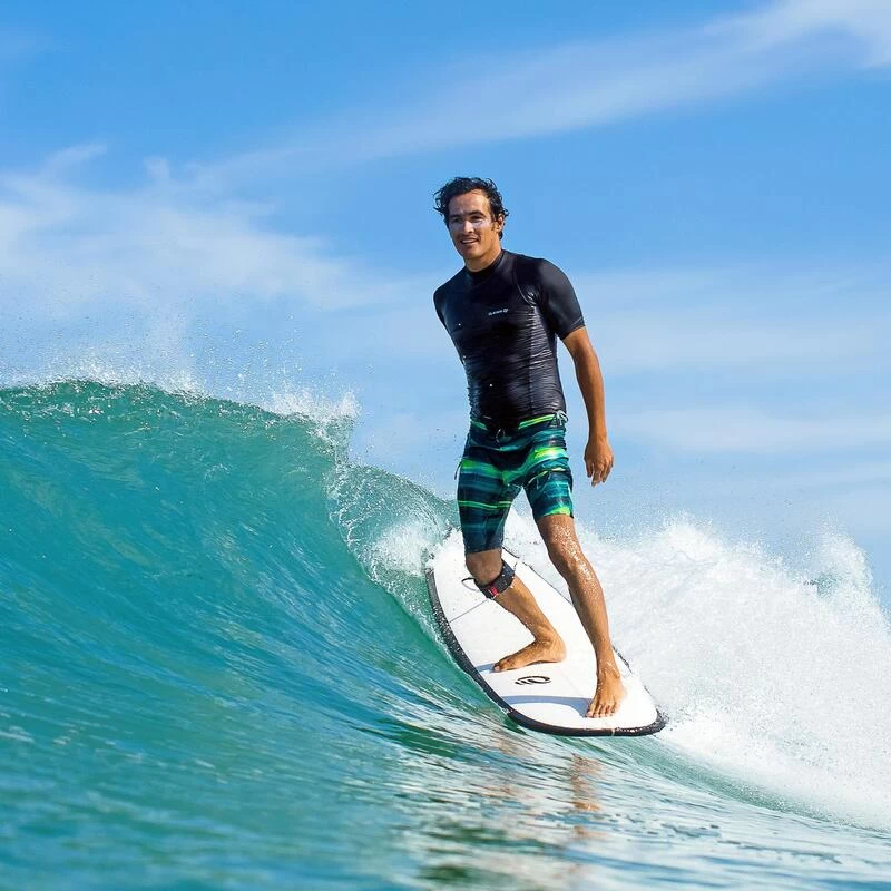 Notre équipe de concepteurs a développé un tee-shirt anti UV particulièrement adapté à la pratique du surf en eau chaude, pour des sessions de moins de 2 heuresTee shirt anti-UV manches courtes pour protéger du soleil, même dans l’eau, et limiter les irritations au contact de la planche. Coupe ajustée et cordon de serrage pour la stabilité dans la vague.