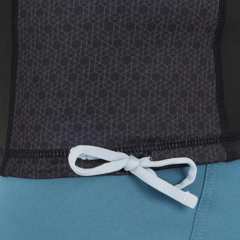 Ce top anti-UV OLAIAN dispose d’un cordon de serrage au niveau des hanches. Il permet de serrer le top pour assurer une meilleure stabilité. Il a également été étudié pour pouvoir passer le cordon du short de bain afin d’éviter que le top remonte pendant la pratique.