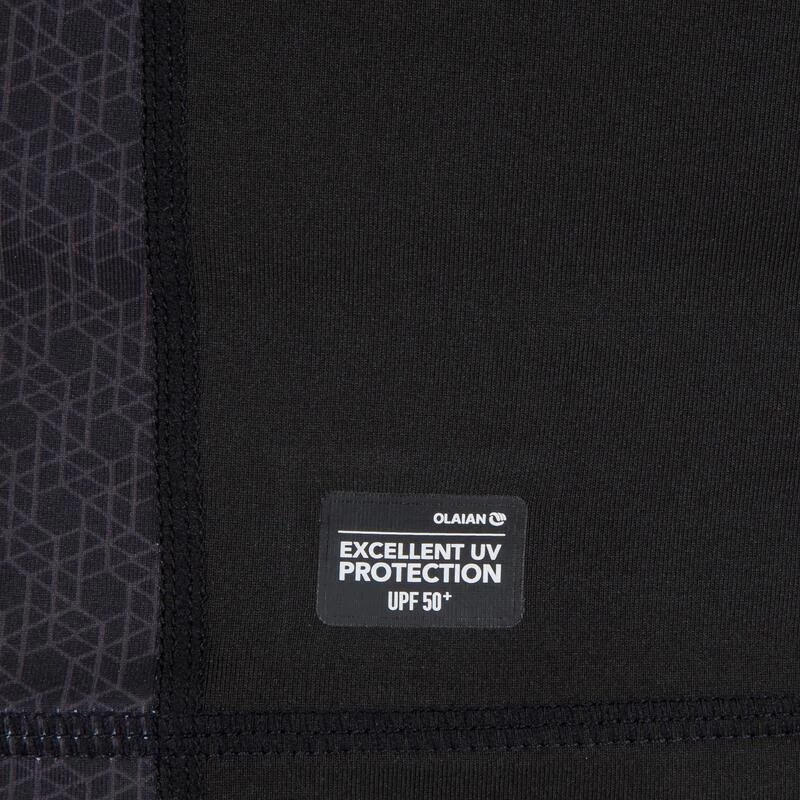 Le textile qui compose ce produit anti-UV OLAIAN permet de bloquer au minimum 98 % des UVB et 95 % des UVA (UPF 50+). C’est la garantie d’une protection efficace contre le soleil. Il peut être utilisé dans et hors de l’eau pour la pratique des sports nautiques et aquatiques. La filtration des UV est générée par la densité des fibres textiles, cette protection est durable dans le temps, même après lavage. Attention, l’élastane présent dans la fibre peut se détériorer en eau chlorée.