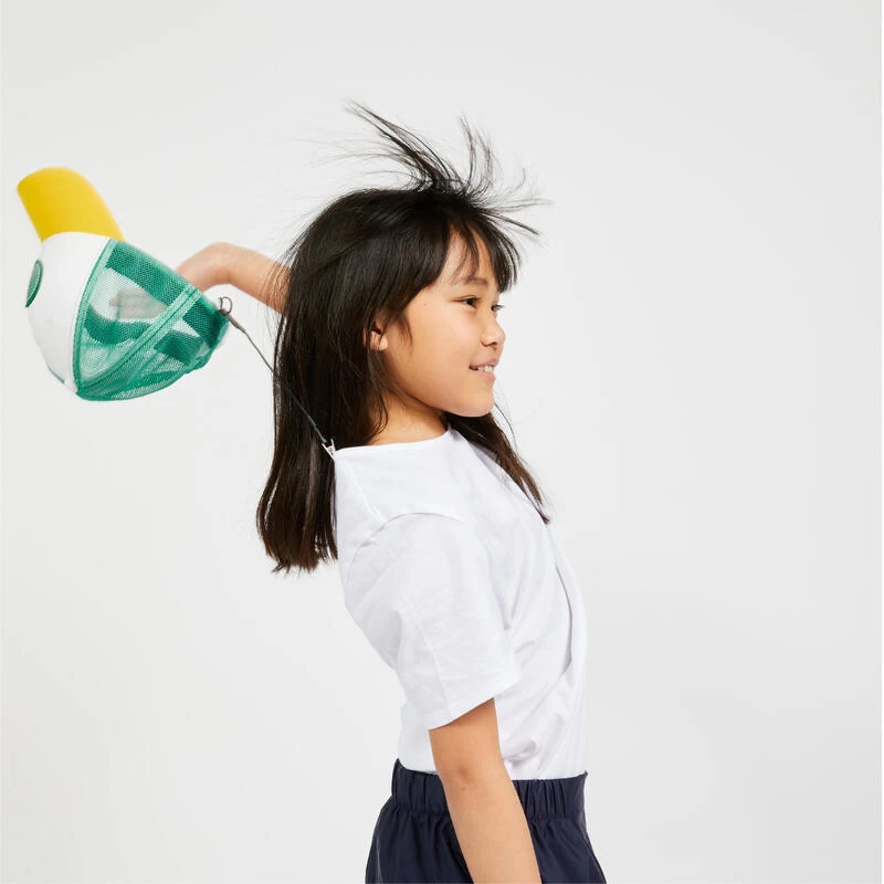 Un cordon élastique permet d’attacher la casquette à son t-shirt pour éviter de la perdre s’il y a un coup de vent. Ce cordon est amovible