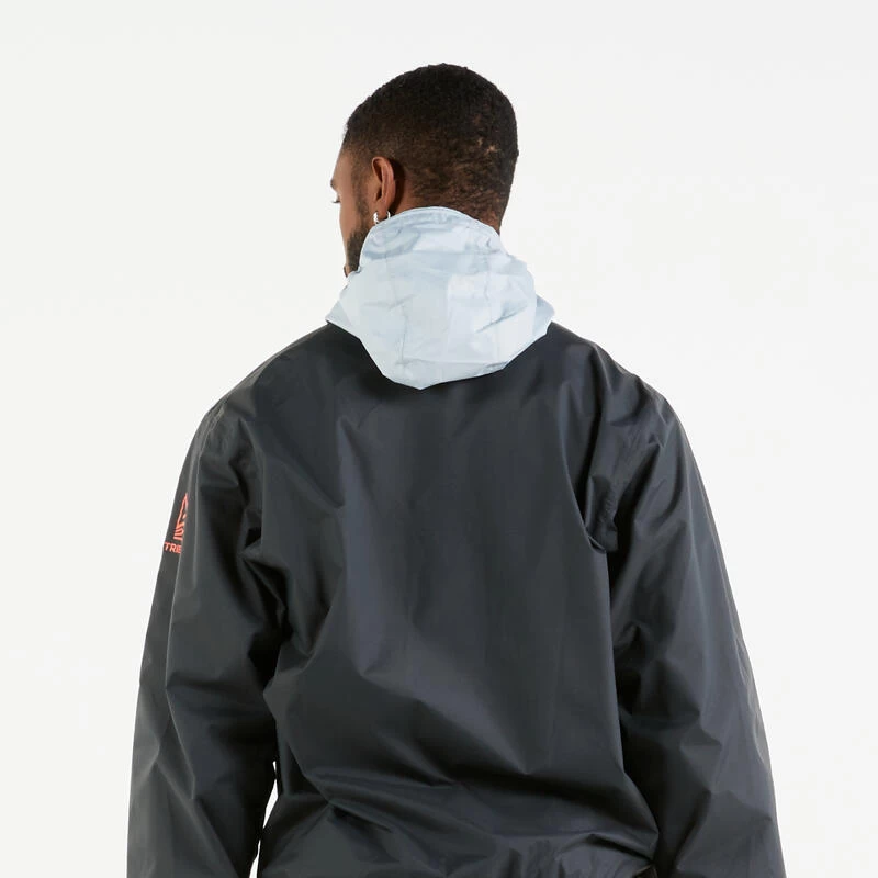 Coupe-vent avec capuche qui suit les mouvements de la tête, extrémités (poignets et bas) ajustables pour limiter les entrées du vent. Une poche pratique.